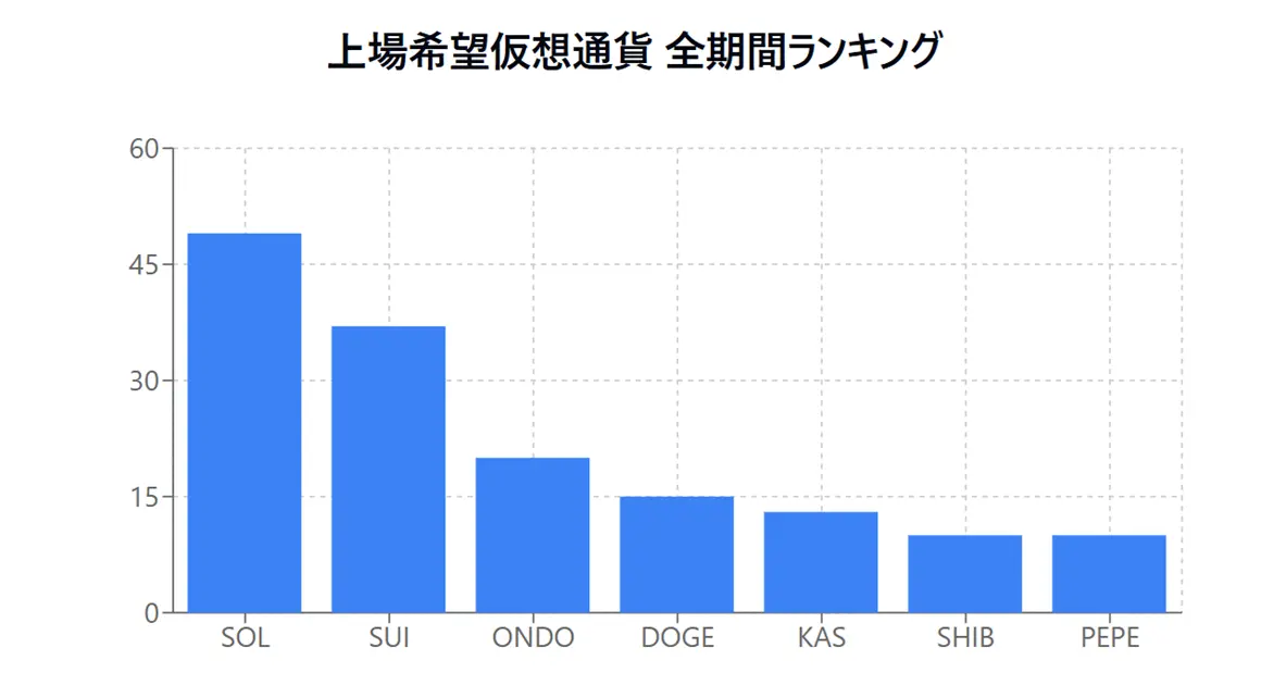 - ソラナ(SOL):48票 – 高い時価総額とさらなる成長期待