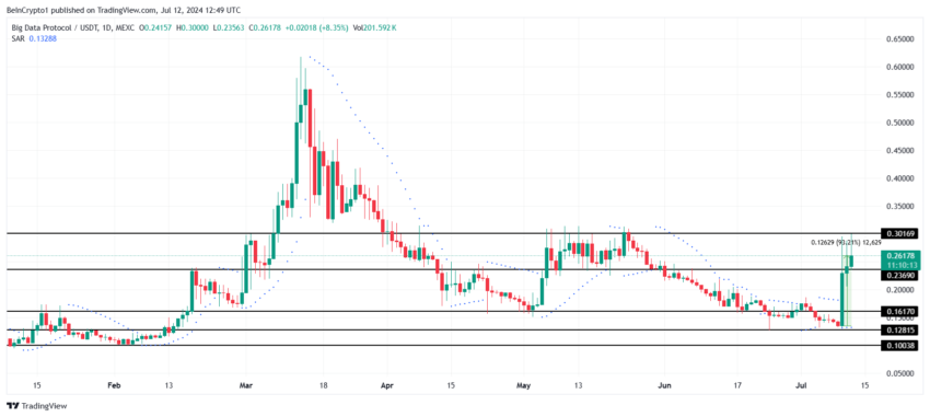 この上昇により、アルトコインは数ヶ月前の安値0.129ドルから0.261ドルまで上昇した。その際、BDPは0.161ドルと0.236ドルという2つの重要な抵抗レベルを無効にした。AIトークンは現在、0.301ドルのレジスタンスに直面しており、資産の統合を維持するだろう。