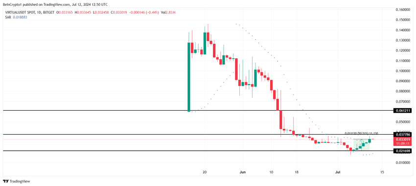 Sponsoredとはいえ、ここ数週間で失った利益を取り戻すにはまだ長い道のりがある。6月の暴落でVIRTUALは0.100ドルから0.021ドルまで下落し、現在は205%の上昇でそこに戻ることを保証している。
