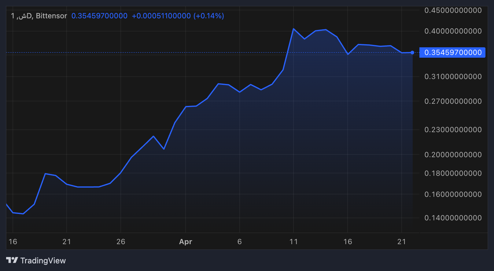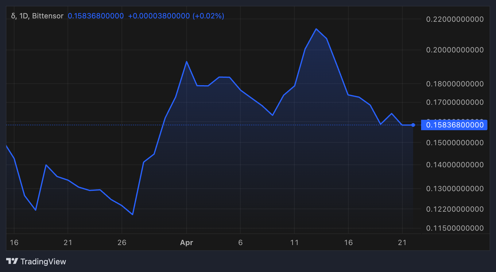 それにもかかわらず、サブネットトークンは他のトークンと比べて最小の上昇を見せている。先月の間にその価値は約60%上昇した。4月初めに調整があった。わずかな回復の後、下落が再開した。
