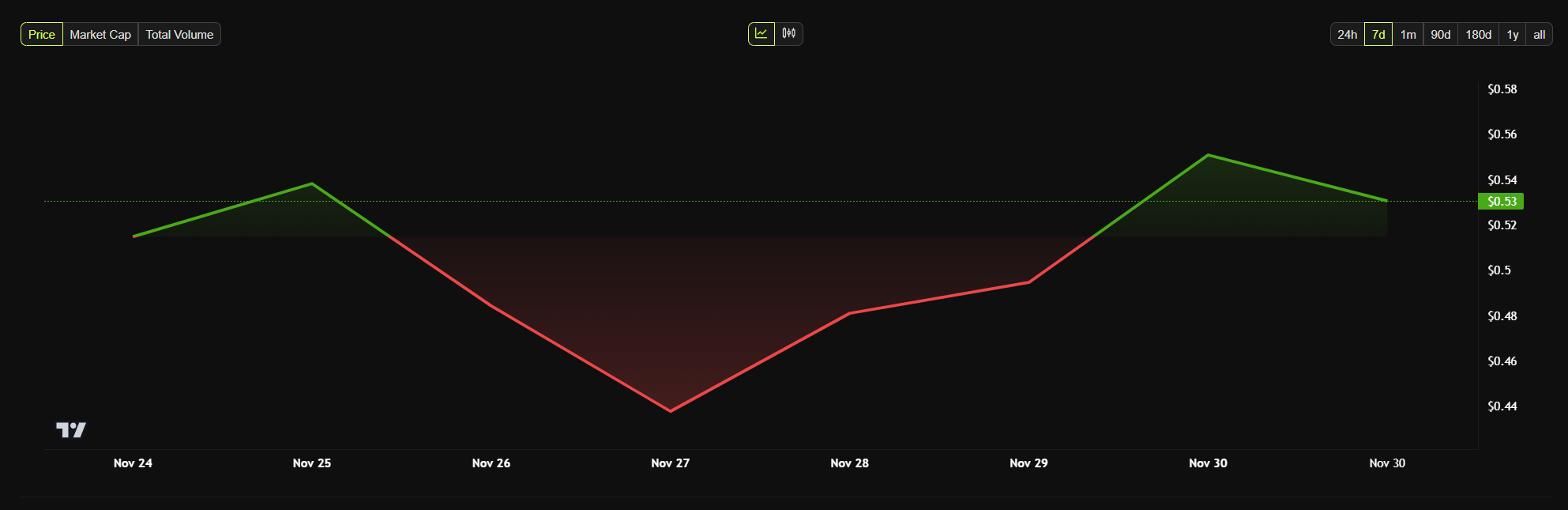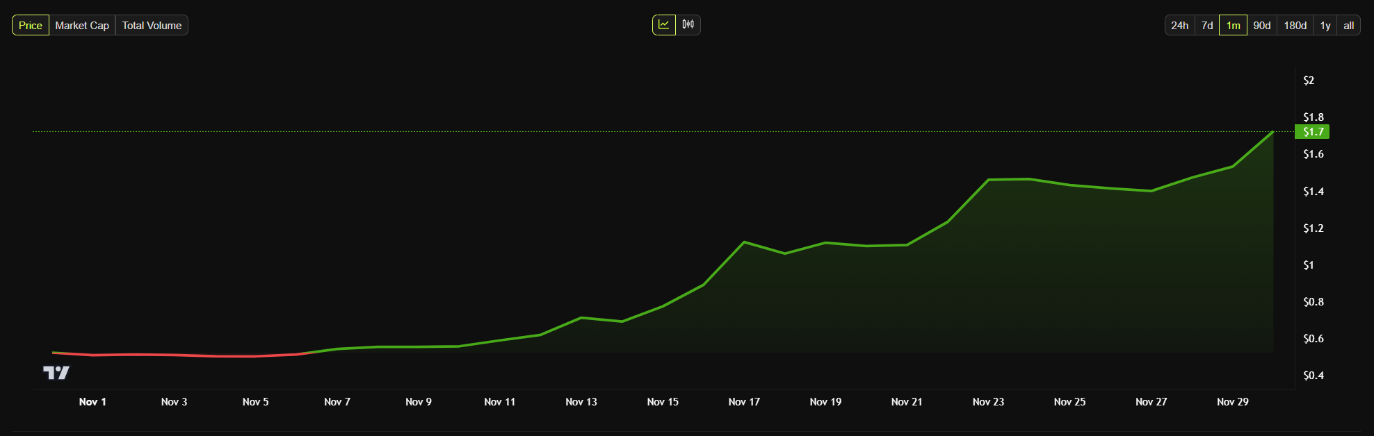 ステラルーメン(XLM)は今週58%急騰し、0.53ドルに達したー2021年以来の最高価格である。この急上昇は、グレースケール・インベストメンツによるステラルーメン・トラストの10-K申請に続くものである。この申請は11月23日に提出され、昨年度の信託の純資産が10%成長したことを詳述している。