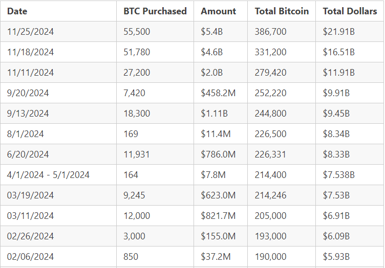 マイクロストラテジーの共同創設者マイケル・セイラーは新たなビットコインの取得を示唆した、同社が11月22日に発行した転換社債を通じて30億ドルを調達した後である。このノートは機関投資家に非公開で提供され、2029年に満期を迎え、1株あたり672ドルのプレミアムストライク価格を持つ。