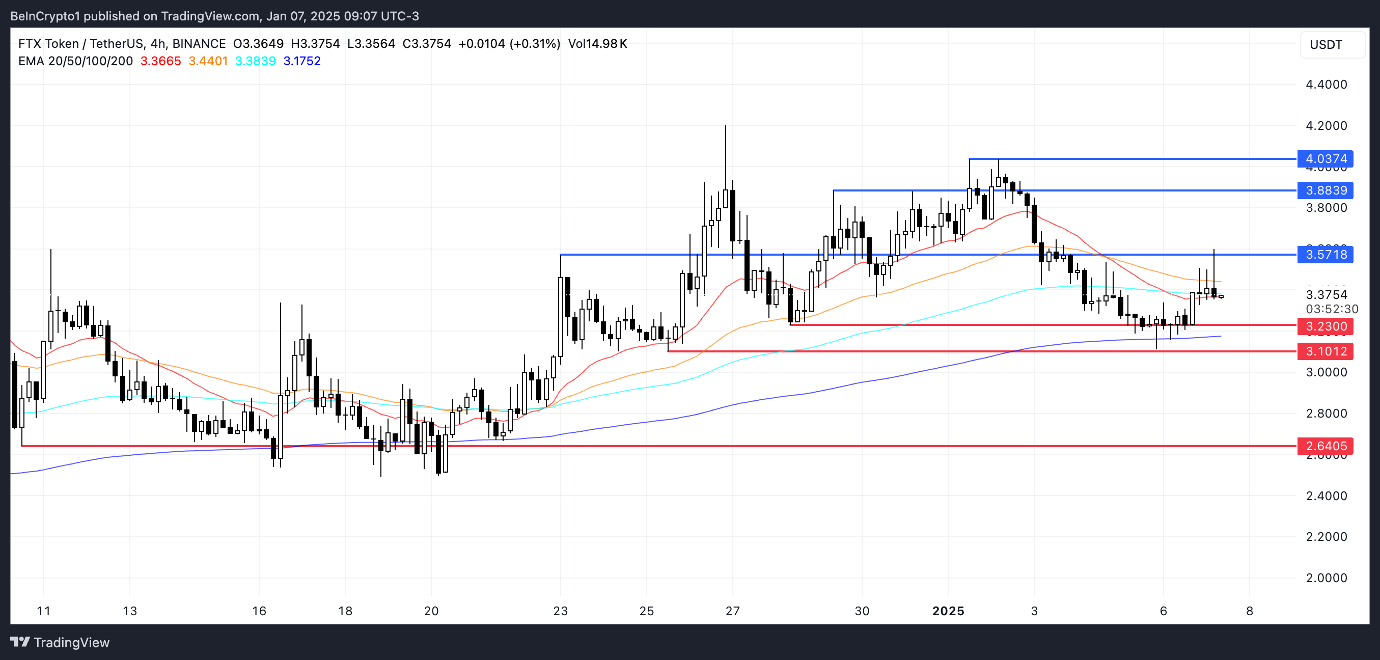 SponsoredFTT価格チャートは、上昇の勢いを再燃させる可能性のあるゴールデンクロスの形成を試みています。成功すれば、FTTは3.57ドルの抵抗を試し、このレベルを突破すると3.88ドル、さらには4.03ドルへのさらなる上昇につながる可能性があります。