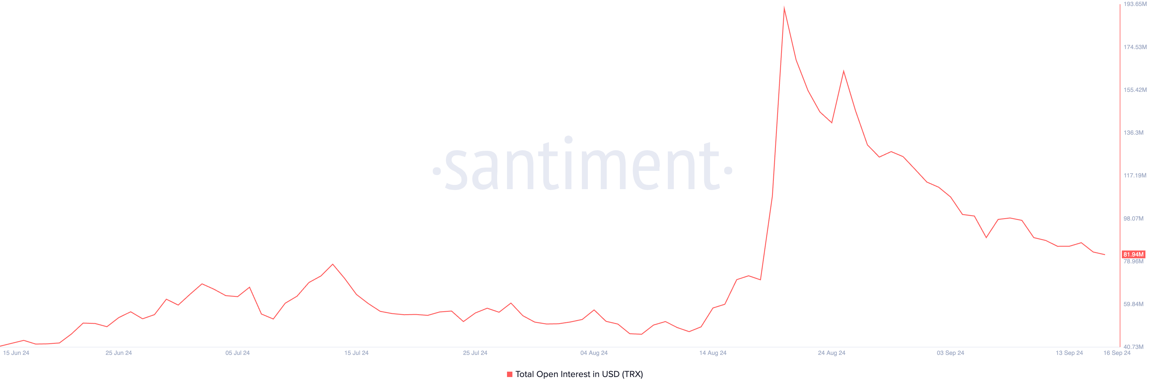 プレス時点で、TRXの建玉は8,200万ドルで、8月21日から57%減少したことを反映しています。