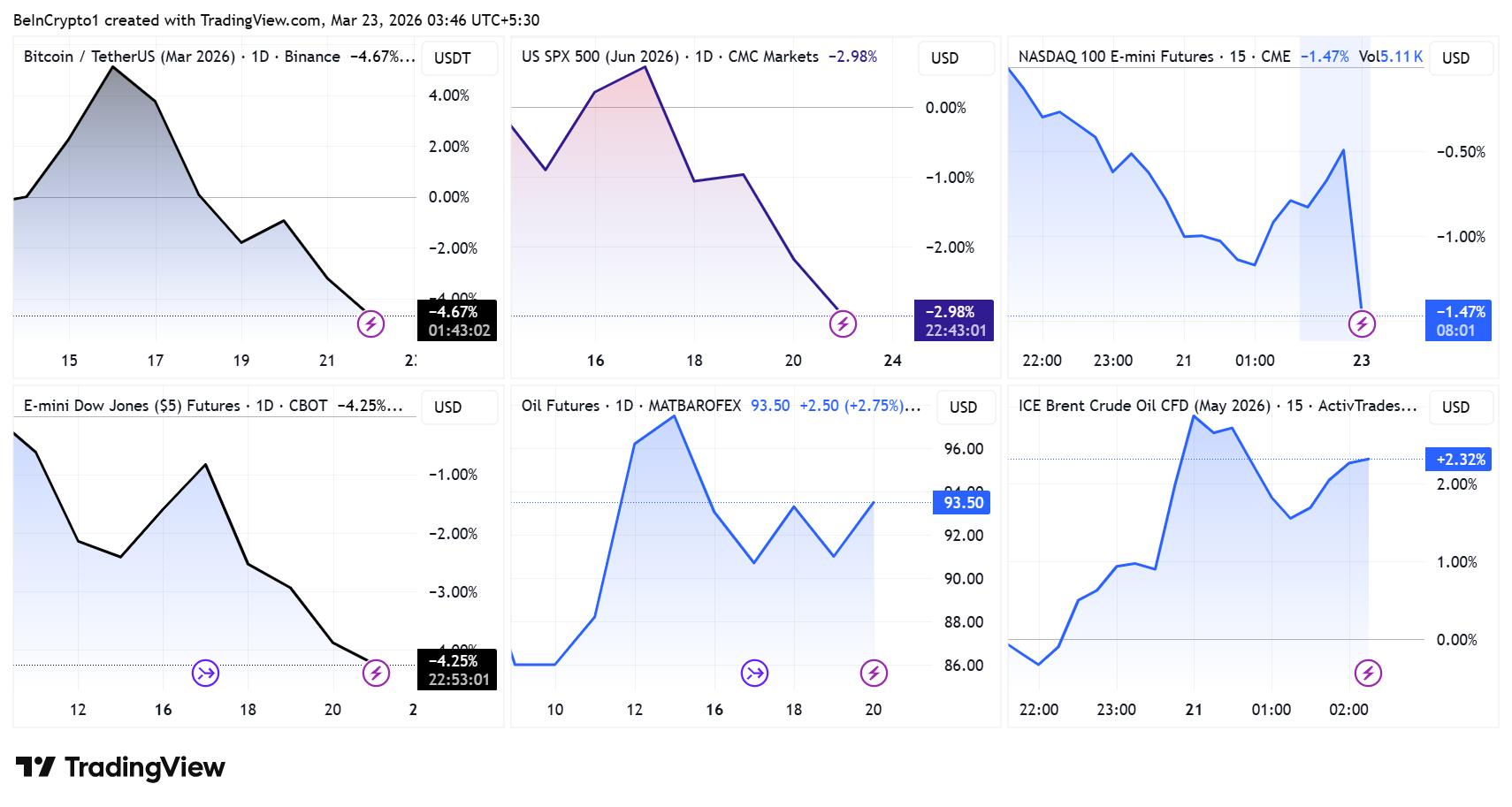 今後24時間は、戦争勃発以来、世界市場にとって最も重大な分岐点となる。現時点でこのシナリオを支持する兆候はないが、イランが脅迫下でホルムズ海峡を再開放しない限り、エネルギー・債券・株式・暗号資産の同時再評価という事態に進展する見通し。