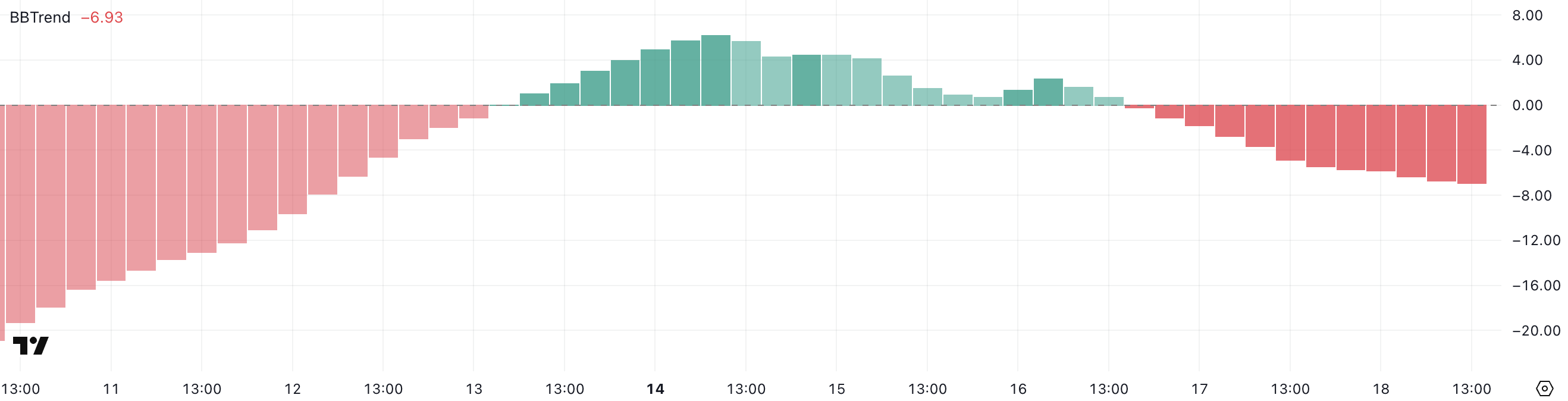 BBTrendがすぐにプラス領域に戻らない限り、TRUMPミームコインは短期的に圧力と不安定性が増す可能性がある。