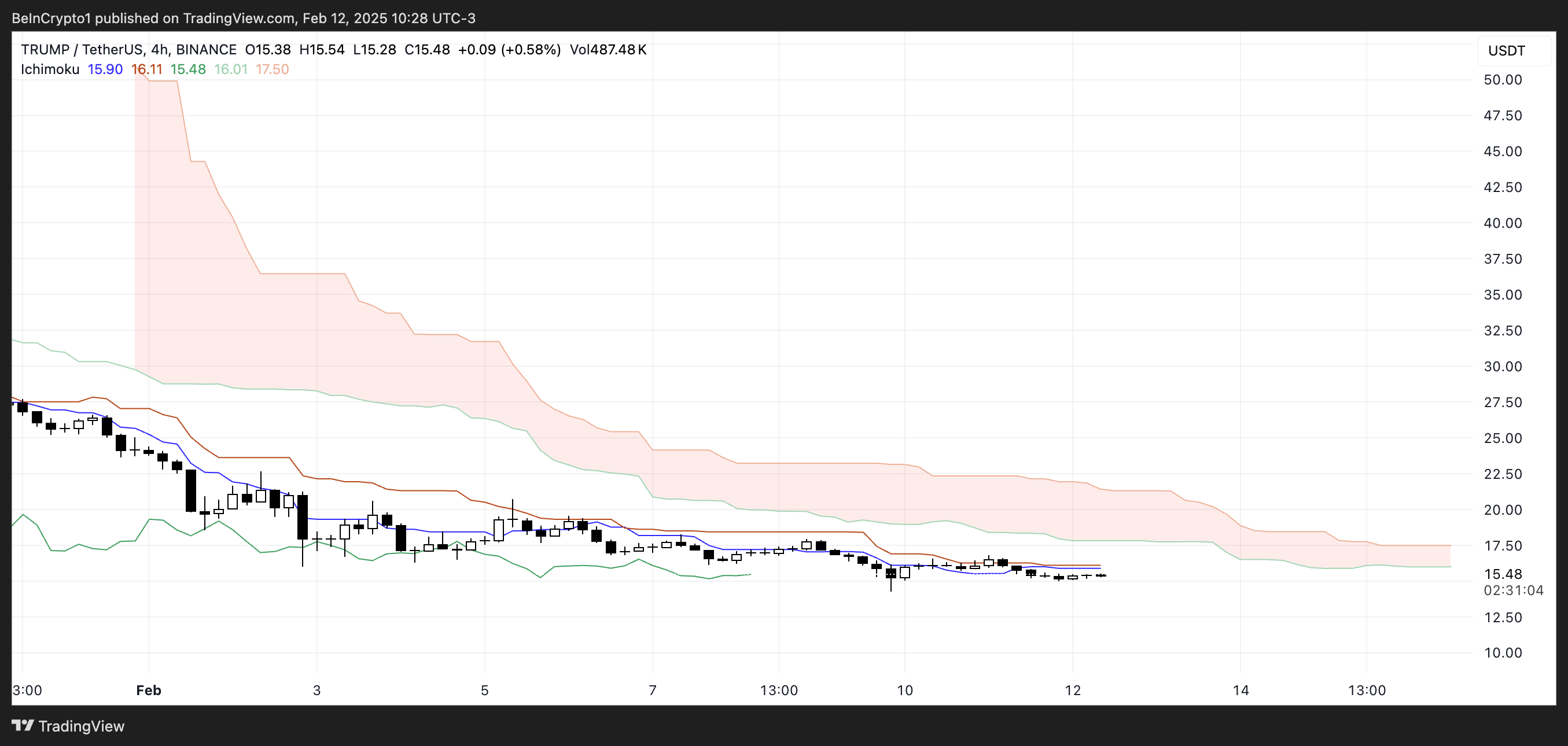 TRUMP公式ミームコインのBBTrendは過去10日間負のままで、2月4日に-49の低値を記録し、弱気の勢いが続いていることを示している。最も深い負のレベルからは回復したものの、現在の-13.2の読み取りは、下方圧力が依然として存在することを示している。