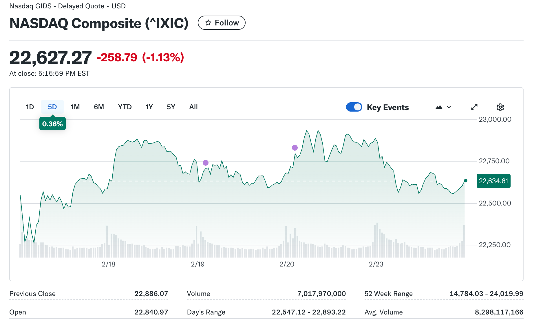 株式市場の急落に追い打ちをかけたのが、AI(人工知能)を巡る構造的な懸念だ。生成AIツールの急速な普及により、従来のソフトウェア企業のビジネスモデルが代替されるとの見方が拡大。ナスダック総合指数は前週末比258.80ポイント安の2万2,627.27で引け、ハイテク株中心に売りが集中した。