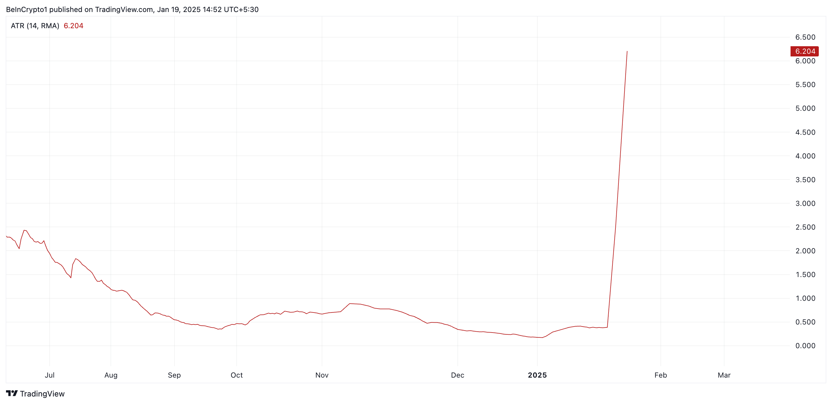 さらに、TRUMP市場は非常に不安定であり、下振れのリスクが高まっています。これは、現在6.20の上昇する平均真実範囲(ATR)によって反映されています。