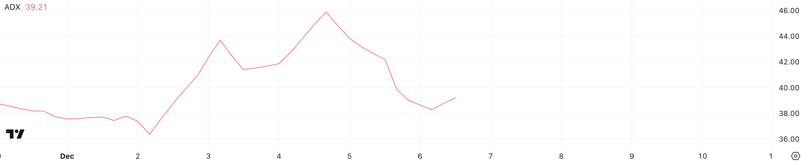UNIのADXは現在39で、2日前の46から低下しており、トレンド強度のわずかな減少を示している。