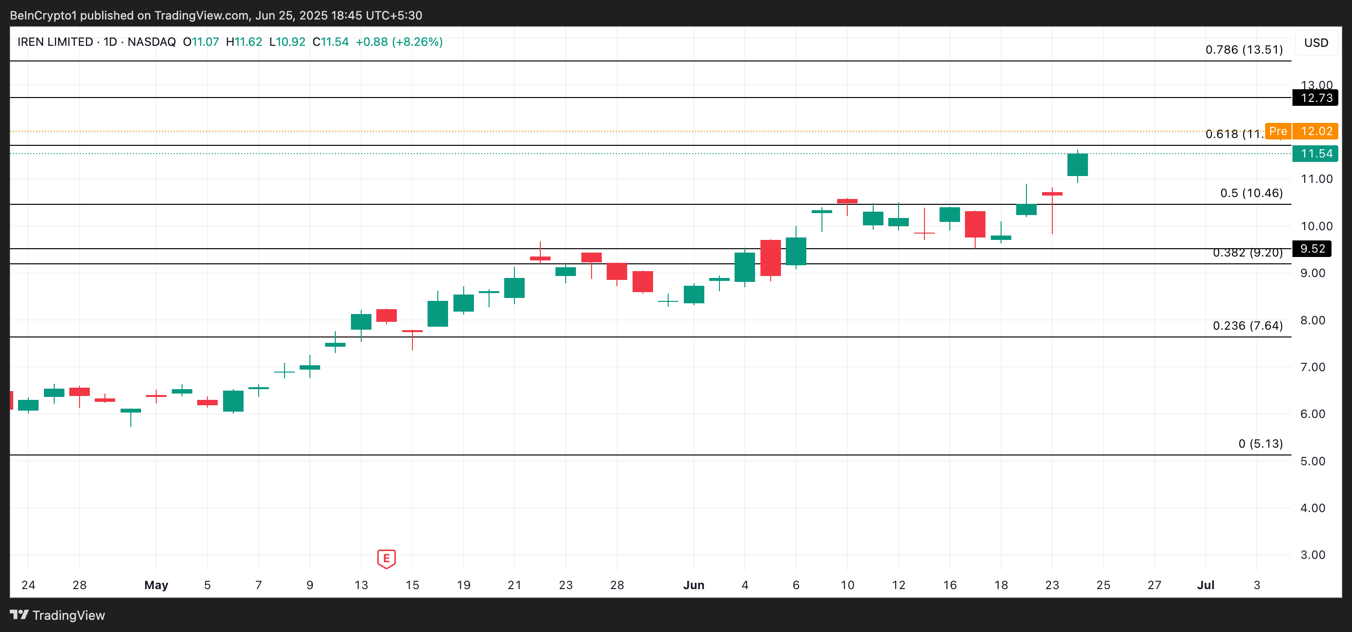 アイレン・リミテッドの株価は上昇中。火曜日の取引で11.54ドルで終了し、7.97%上昇した。水曜日のプレマーケット取引では、IRENはさらに上昇し、執筆時点で12.02ドルで取引されている。