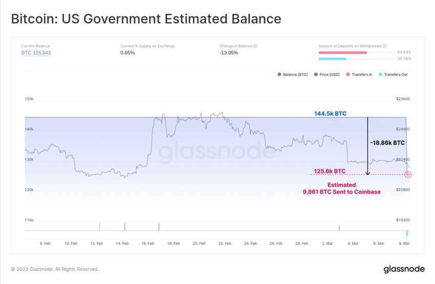 暗号資産(仮想通貨)分析会社Glassnodeのオンチェーンデータによると、2023年3月9日に約9,860ビットコイン(およそ2億6900万ドル相当)がコインベースのアドレスに送られている。これらのビットコインはダーク・ウェブインター・ネットマーケットプレイス「シルクロード」が摘発された際に押収された。