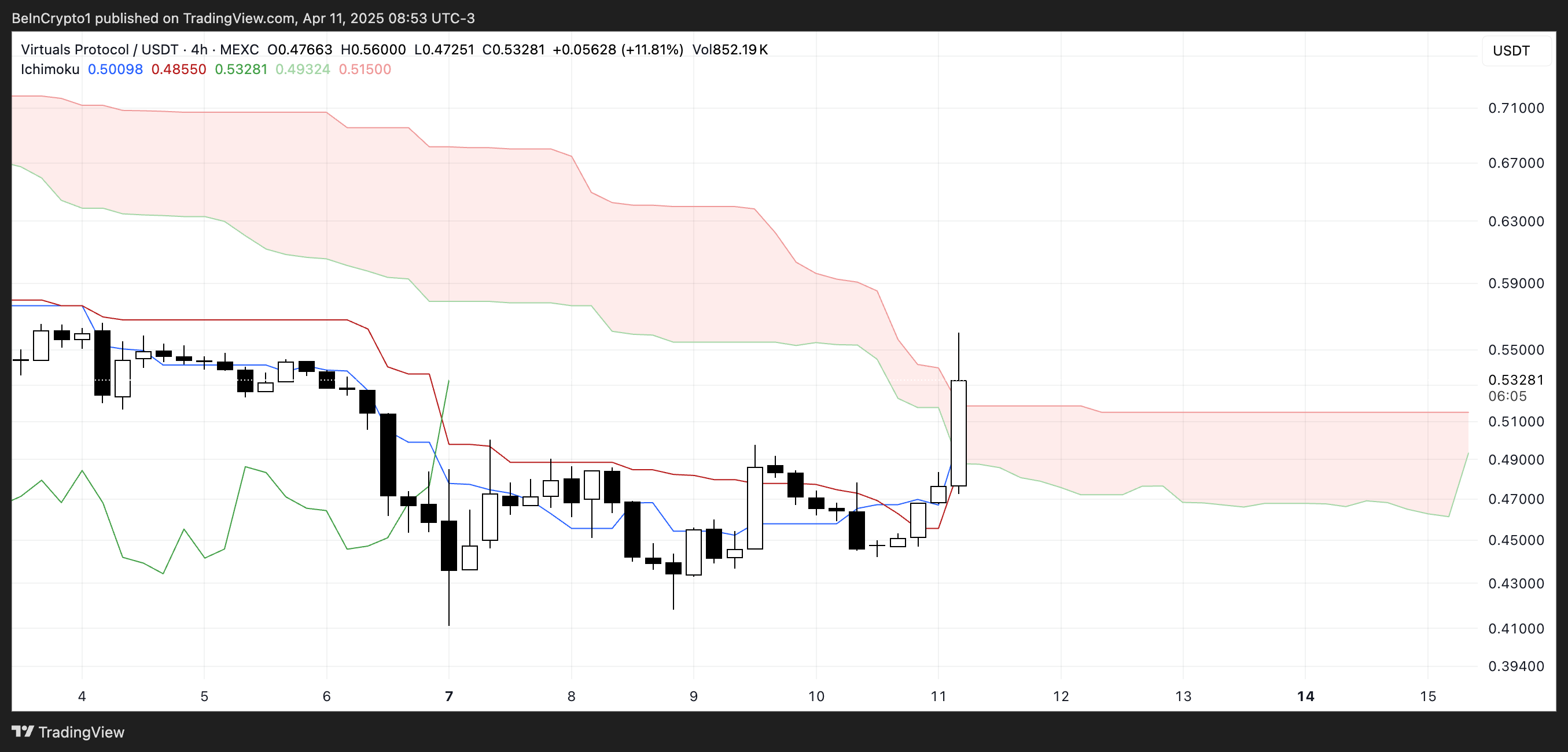 SponsoredVIRTUALの一目均衡表は短期的なブレイクアウトの試みを示しているが、基礎的な抵抗は依然として強い。