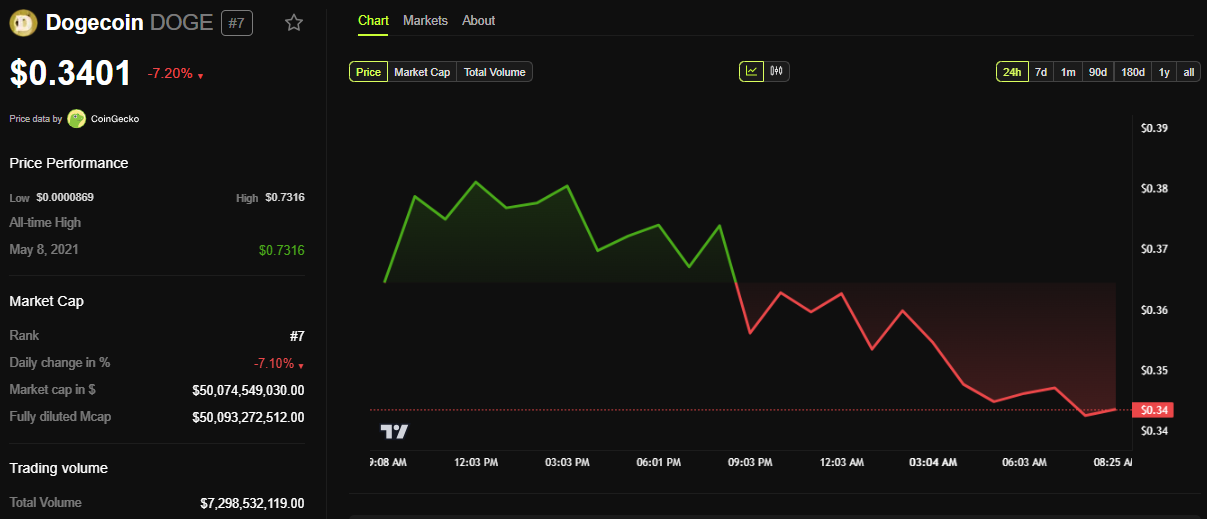 トランプ氏とマスク氏のD.O.G.Eの強調は、ドージコインの価格に一時的な急騰を引き起こしました。しかし、ラマスワミ氏の辞任のニュースが展開されると、7%以上急落しました。
