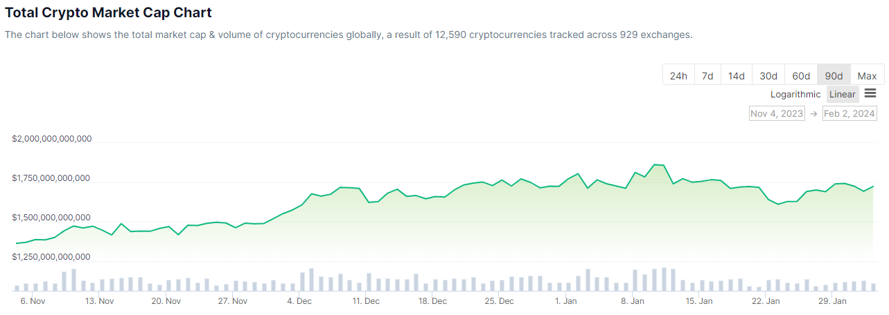 暗号資産市場は週末にかけて冷え込んでいる。月曜朝のアジア取引セッションでは、総資本は1.3%減の1.7兆ドルとなった。