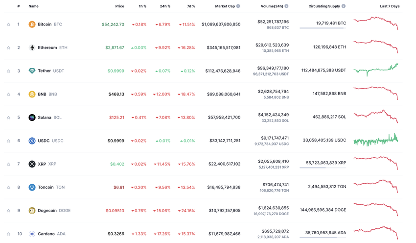 今週、暗号資産市場全体が劇的な下落に見舞われ、ビットコインは4カ月ぶりの安値となる53,500ドルまで下落した。同時にアルトコインも2桁下落した。