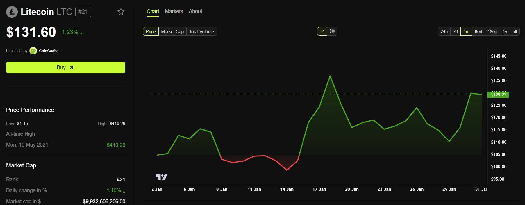 それにもかかわらず、グレースケールの申請はライトコインの価格に大きな影響を与えなかった。本稿執筆時点で、LTCは131.60ドルで取引されており、過去24時間で1.2%上昇している。