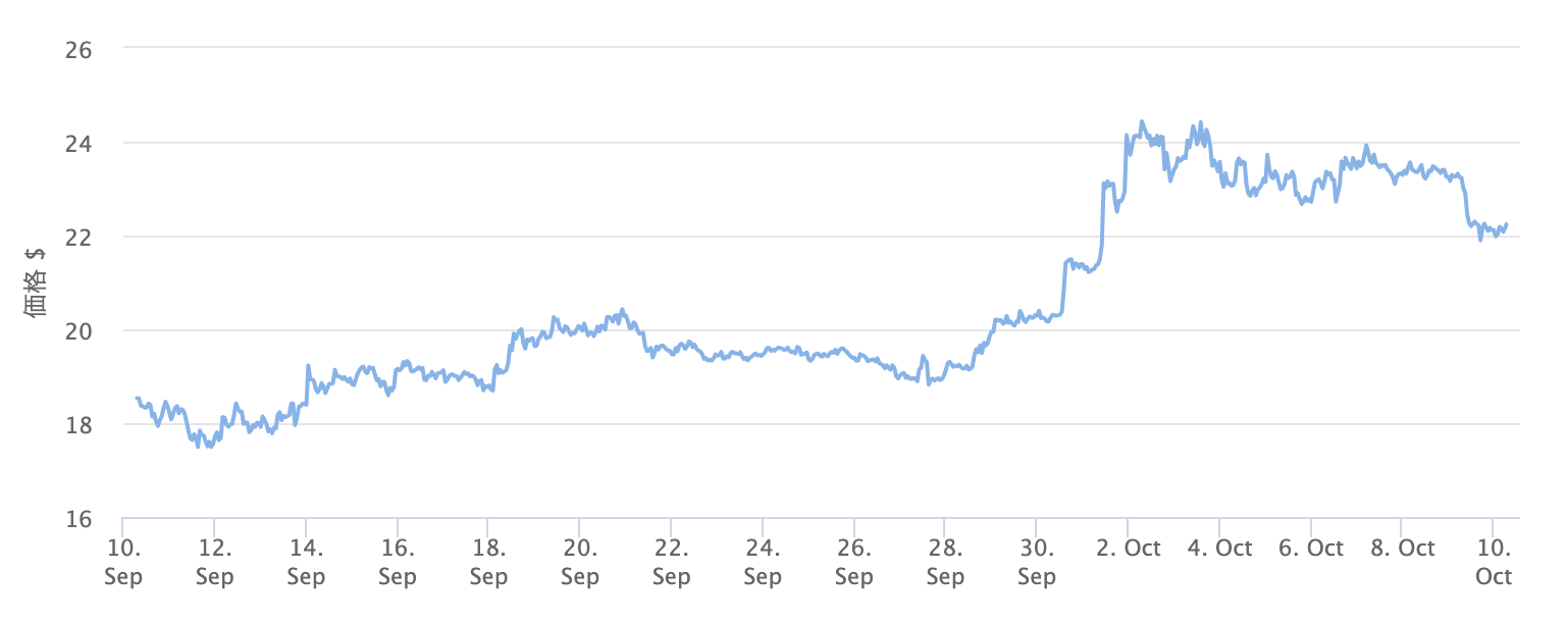 暗号通貨ソラナ(SOL)は同週、22年3月以来の高水準となる2400万ドルの純流入を記録。現在、最も投資家に人気のアルトコインと言える。同通貨のTVL(分散型金融(DeFi)プロトコルに預けられた暗号資産の総価値)は2日、年初来高値を更新する3億3937万ドルを記録。ソラナ価格も同日、1カ月半ぶり24ドル台に回復し、週間上昇率は25.5%増となった。