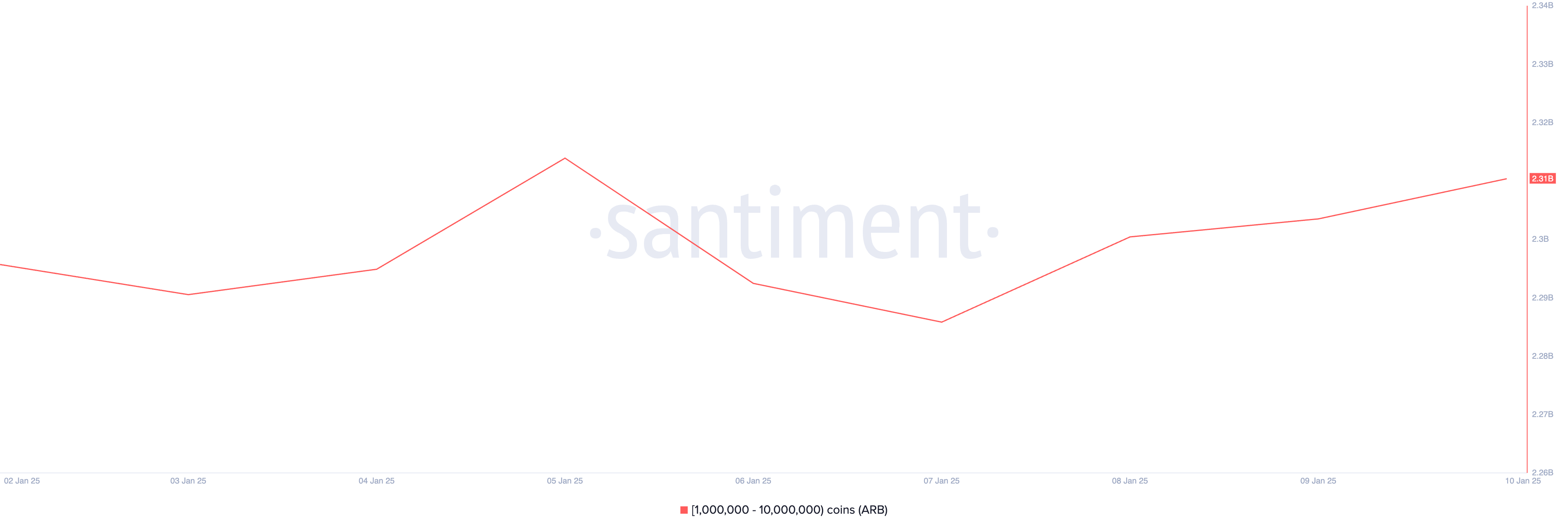 アービトラムクジラも今週登場しました。Santimentによれば、100万から1000万ARBを保有するアドレスの残高は現在23億1千万で、レビュー期間中に1%増加しました。