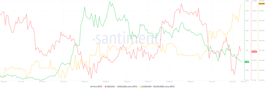 FETのクジラたちは、これがもたらす収益機会に注目し、可能な限りの蓄積に飛びついた。1週間以内に、10万から1000万FETを保有するアドレスは、7300万ドル近くに相当する6200万FET以上を追加した。
