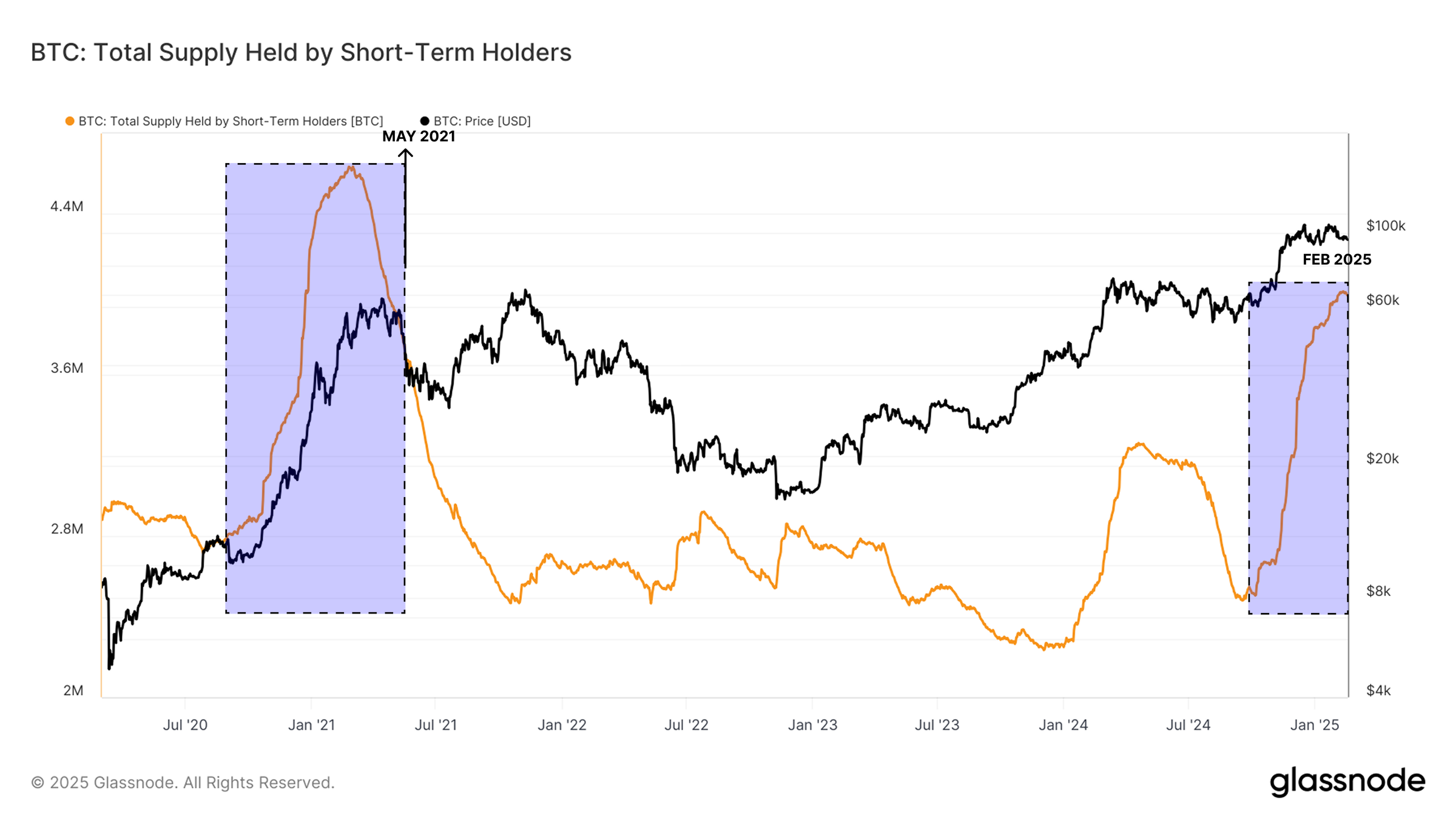 短期保有者(STH)は、ビットコインの最近の価格動向において重要な役割を果たしている。これらの投資家が保有する供給量は、2021年5月に見られた蓄積段階を反映している。