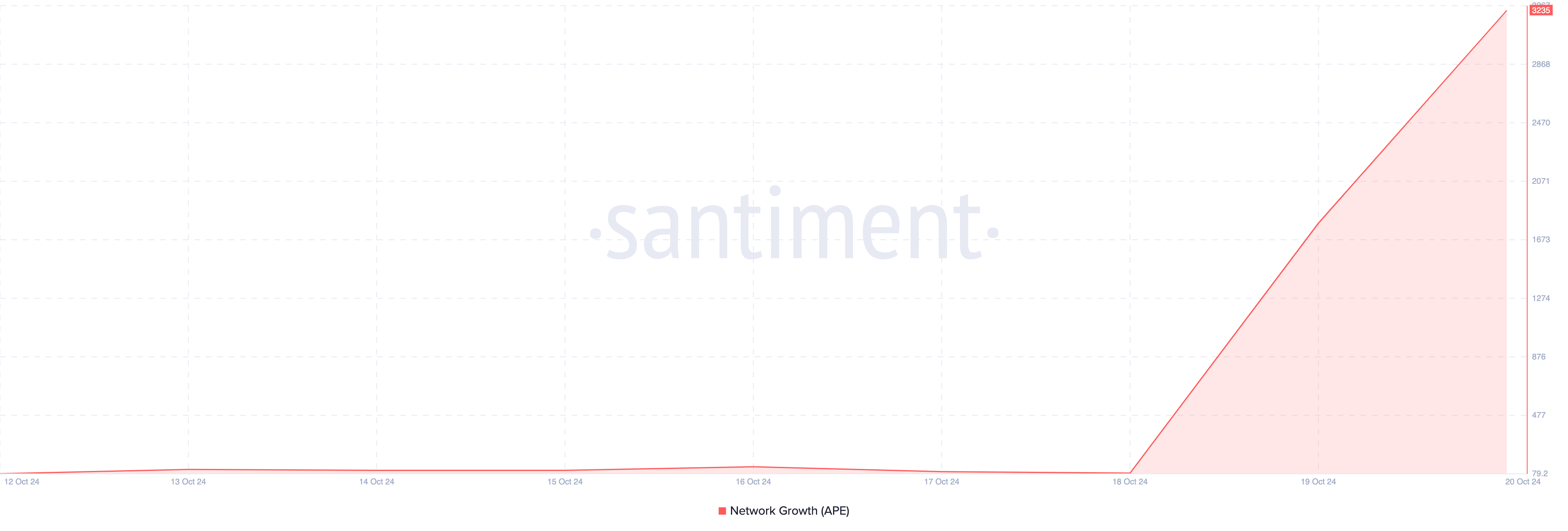 APEのもう一つの注目すべき急増は、プロトコルとやり取りする新しいアドレスの数を追跡するネットワーク成長である。10月18日時点で、ApeCoinのネットワーク成長は83であった。