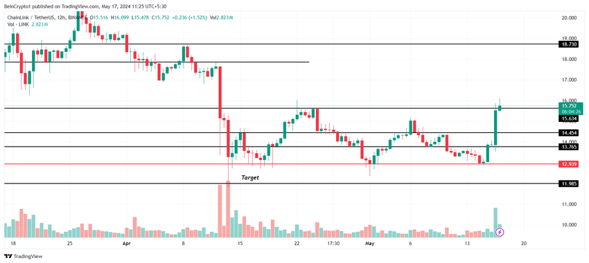 チェーンリンクの価格は上昇し、LINKは過去24時間で最もパフォーマンスの高い資産となった。しかし、アルトコインの上昇はここ数日続いている。広範な市場の強気の合図に乗じて、LINKは過去3日間で21%の上昇を観測し、チェーンリンクは15ドルに達した。
