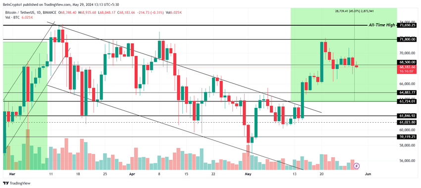 ビットコイン価格は68,500ドルのサポートを下回ったものの、依然として強気の兆しを見せている。投資家は積み立てに集中しており、BTCは今期中に再び70,000ドルに達するだろう。