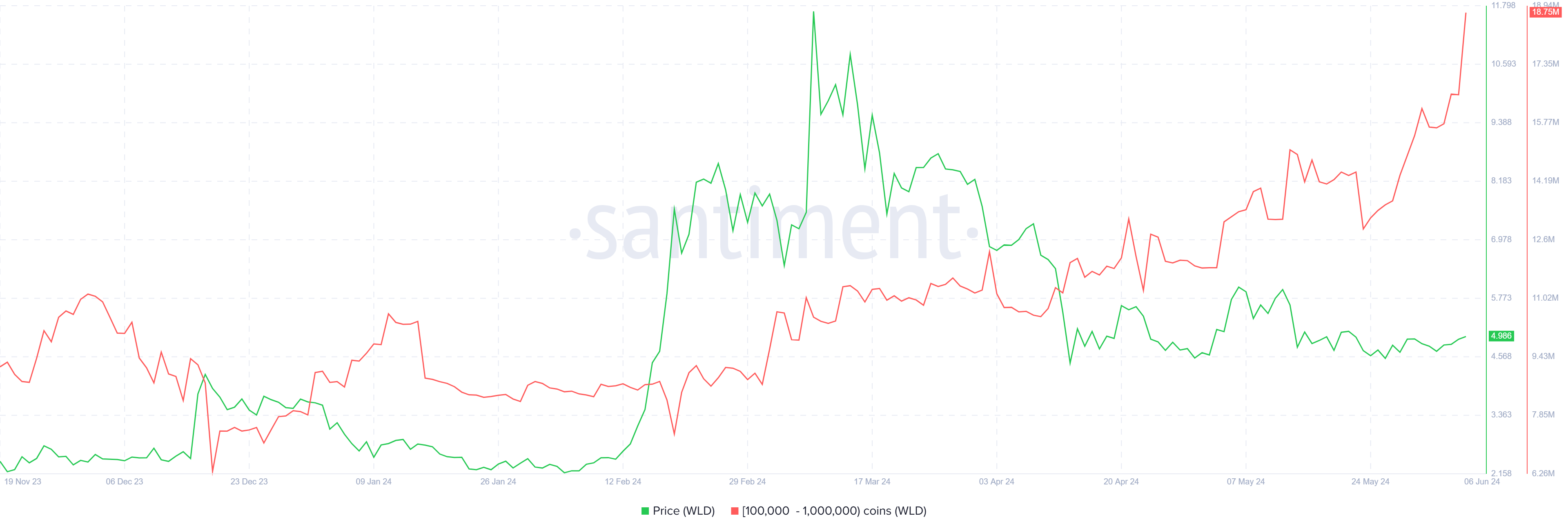 この投資家の蓄積により、WLDは潜在的に投資家の助けを借りて最近の損失を回復することができた。