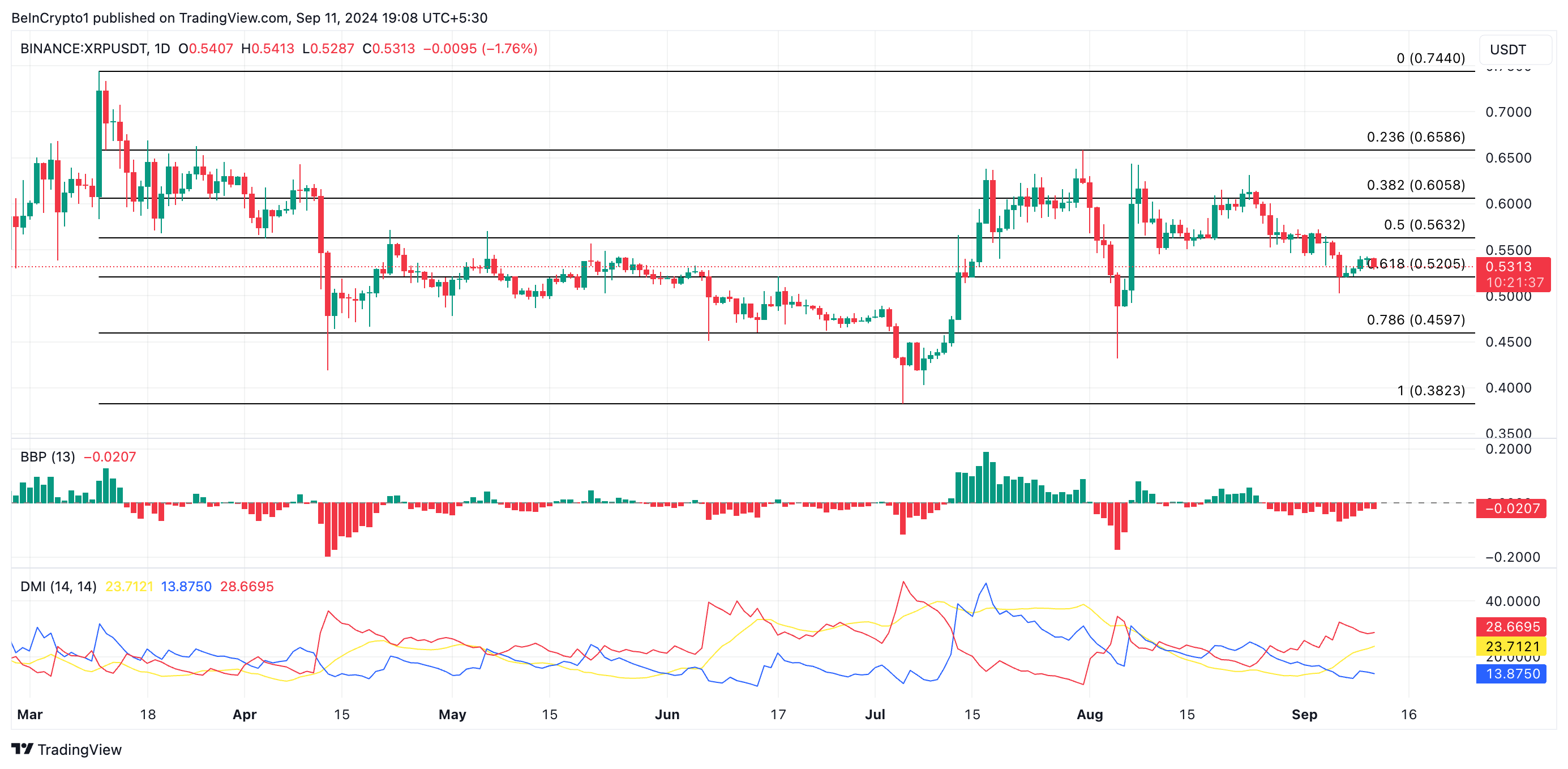 XRPの価格下落が続けば、0.45ドルでサポートを失い、0.38ドルまで下落するリスクがあります。しかし、市場のセンチメントがネガティブからポジティブにシフトした場合、XRPの価格は上昇し、0.65ドルを目標とする可能性があります。