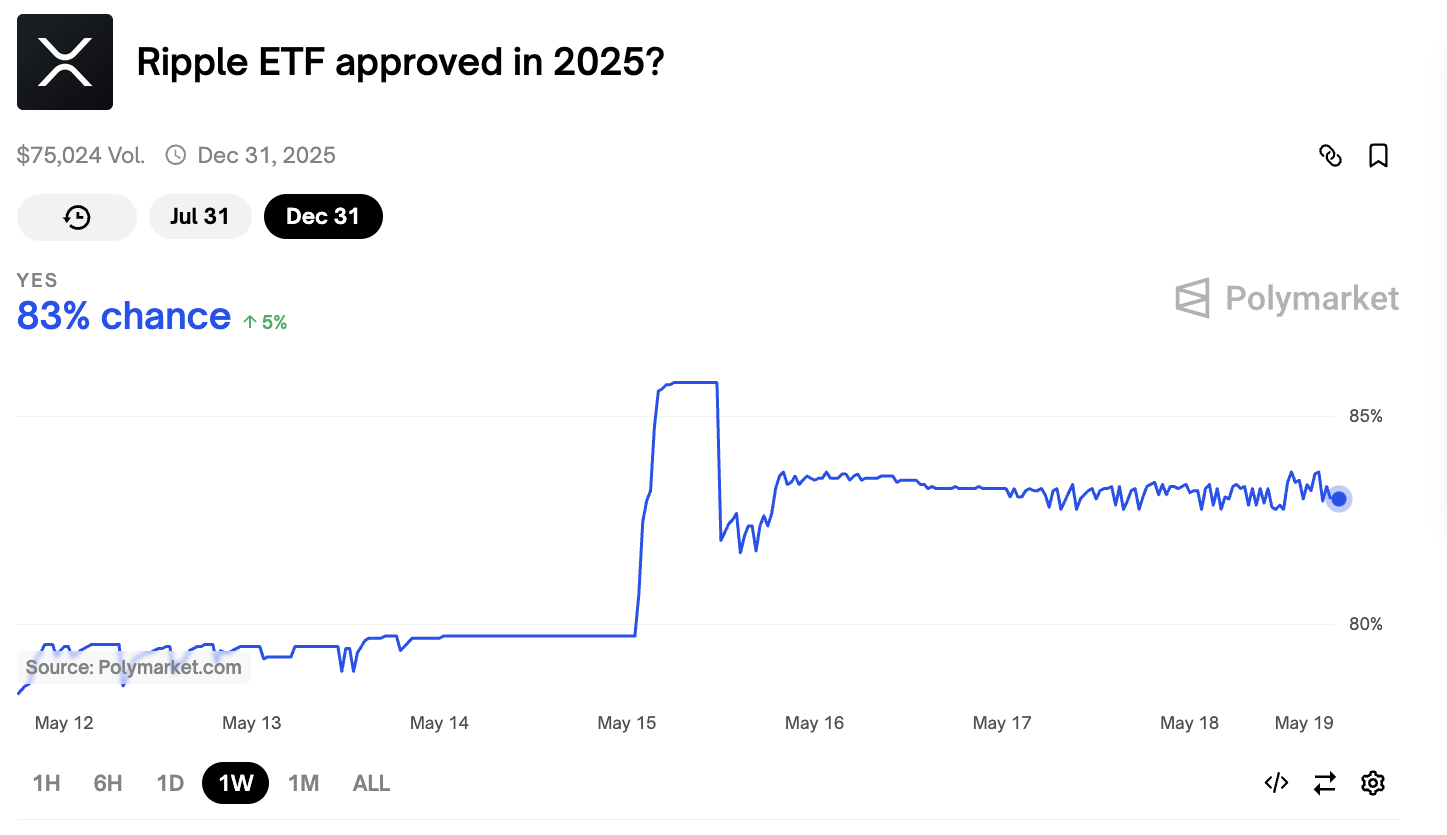 人気のETFアナリスト、ネイト・ジェラシ氏によれば、SECの承認は「時間の問題」に過ぎないという。成功の可能性はポリマーケットで80%以上を維持しているが、今日の展開はそれを押し上げていない。
