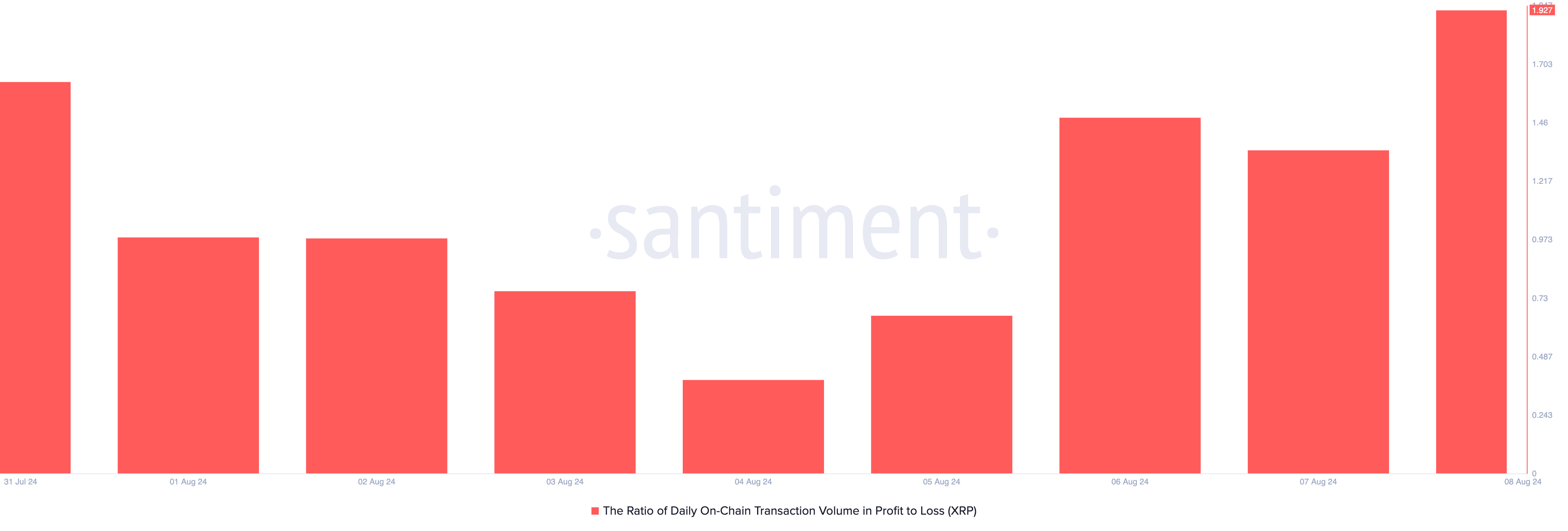 過去24時間におけるXRP取引の収益性の高さも、トレーダーの活発化に拍車をかけている。XRPのオンチェーン取引量を分析すると、大多数のトレーダーが過去24時間で利益を計上していることが明らかになった。