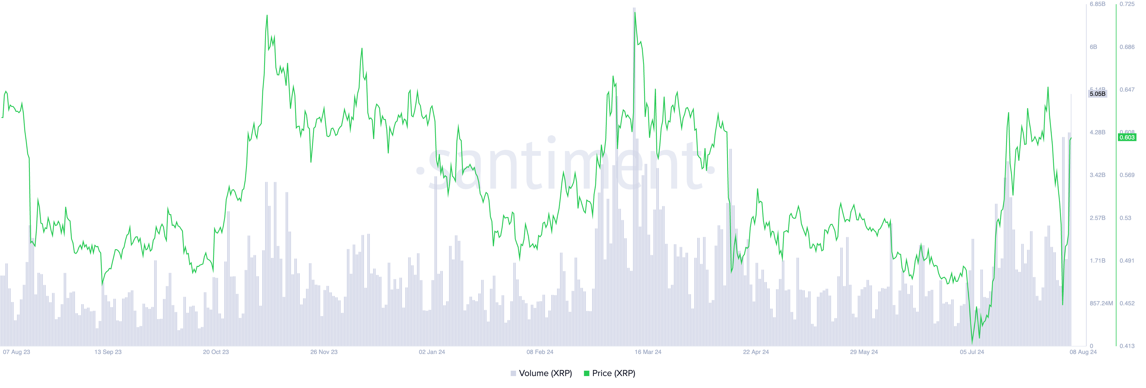 報道時点では、時価総額で7番目の暗号通貨資産は0.60ドルで取引されている。価格上昇に伴い、1日の取引量が急増している。過去24時間で、XRPの取引量は50億ドルを超え、202%の増加を記録しました。