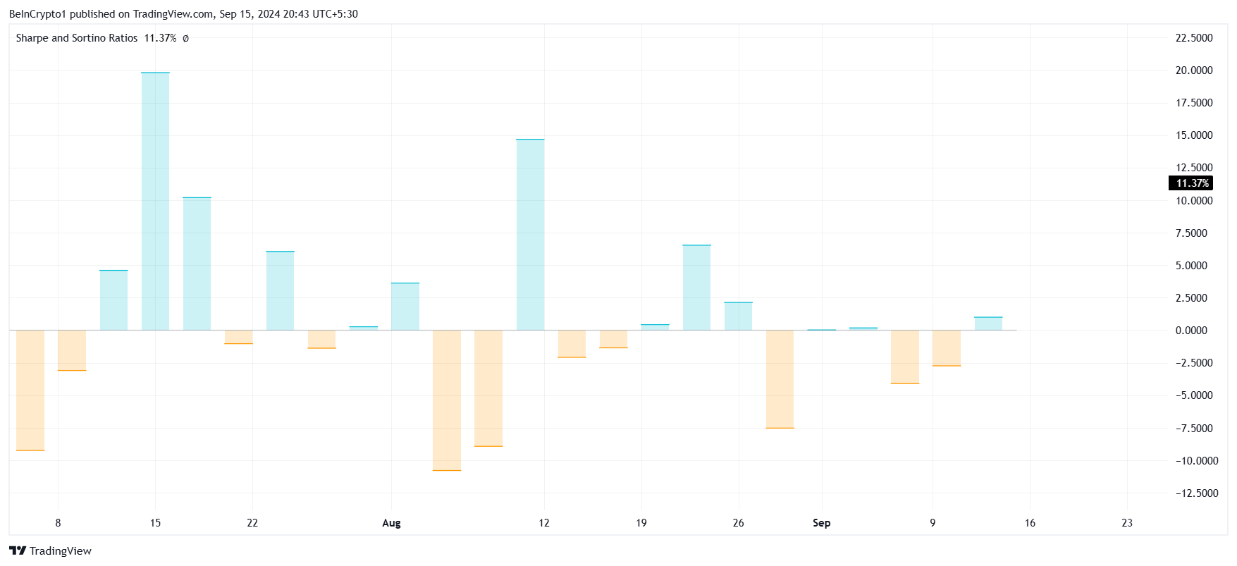 Sponsoredシャープレシオがプラスの領域にあるため、市場環境は買いに有利に見え、それが XRPの価格を押し上げる可能性があります。