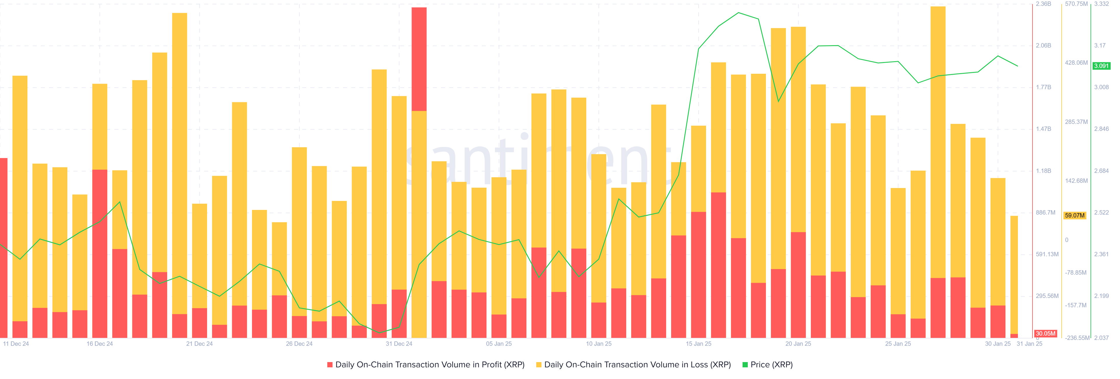 XRPの取引量は主に損失によって支配されている。新たなATHが達成されない中、投資家は保有資産を移動し始めている。この傾向により、多くのXRP保有者が過去2週間の取引で損失を被り、市場全体の信頼感に影響を与えている。