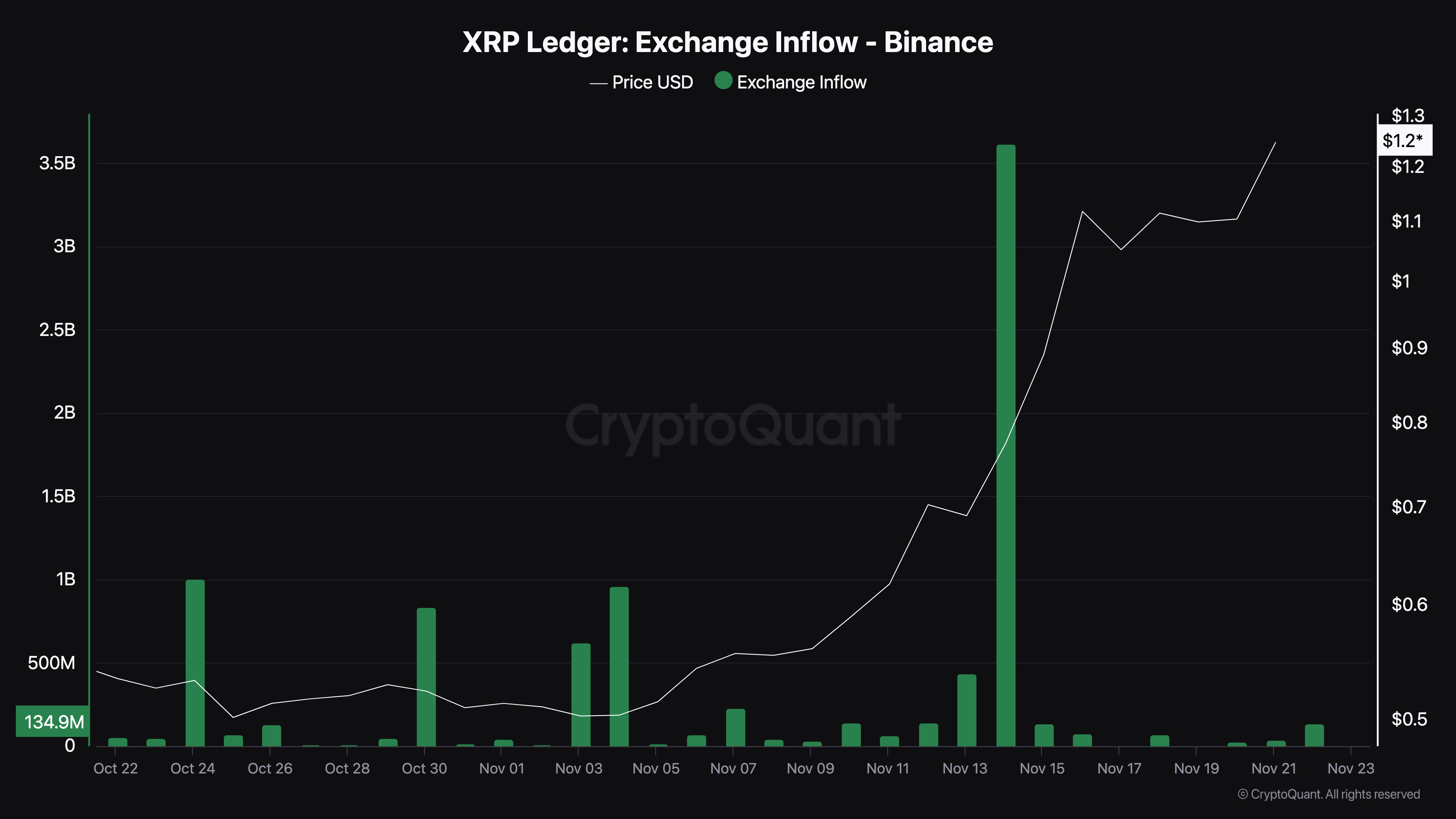 昨日、XRPはこのパターンを突破し、強気派が市場を掌握したことを示した。この勢いが続けば、XRPの価格は1.50ドルを超え、2ドルの大台に近づく可能性がある。