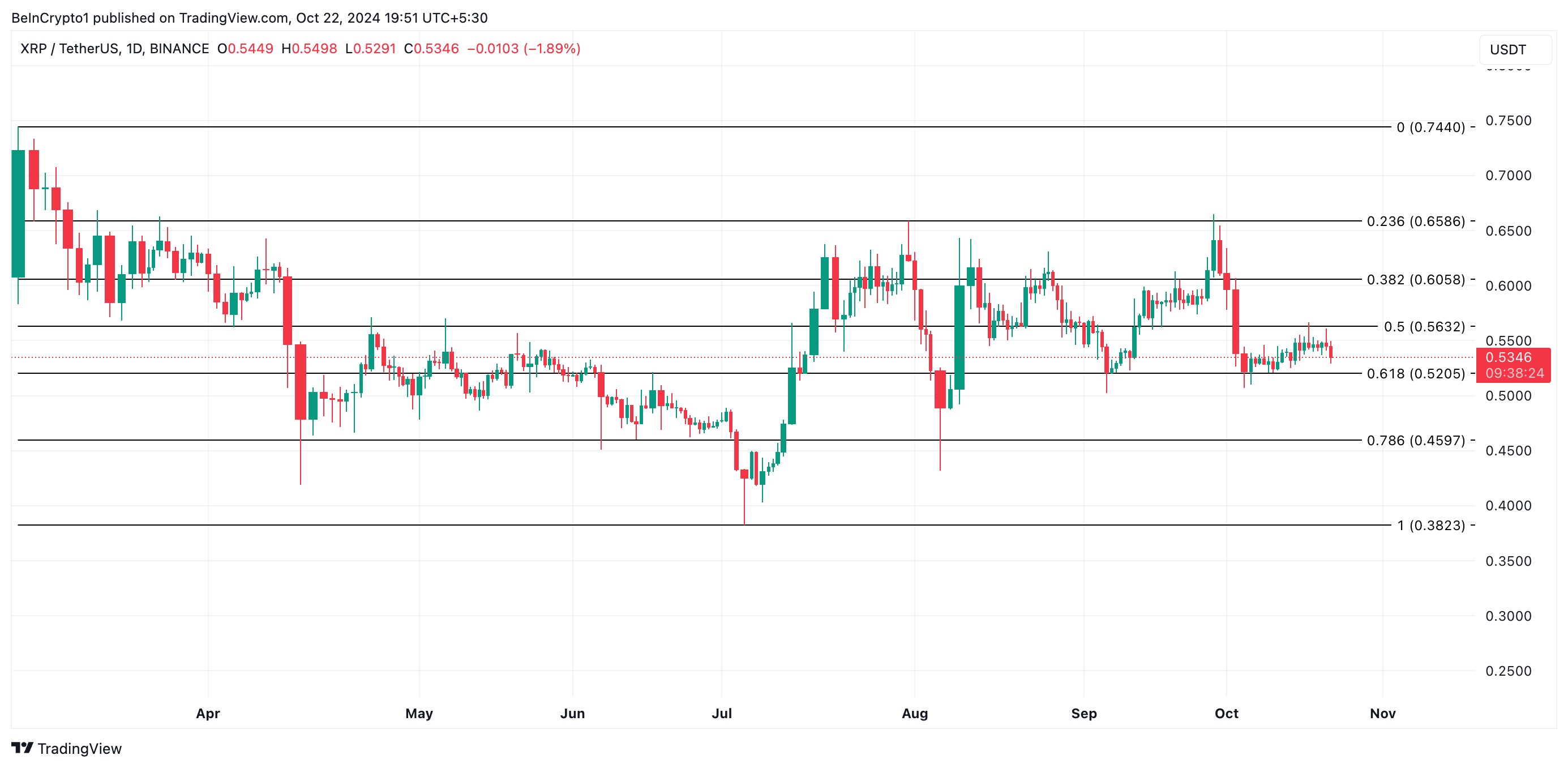 リップルのネイティブトークンであるXRPは、過去1週間で最低点を記録している。本稿執筆時点で、同アルトコインは0.53ドルで取引されており、過去24時間で3%価格が下落した。