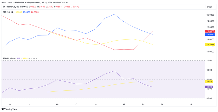 ZKsyncのネイティブ・トークンであるZKは、7月5日に史上最低の0.13ドルまで下落した。その後21%上昇したものの、このアルトコインはこの上昇の一部を失いそうだ。この記事を書いている現在、ZKは0.15ドルで取引されており、過去7日間で10%近く下落している。