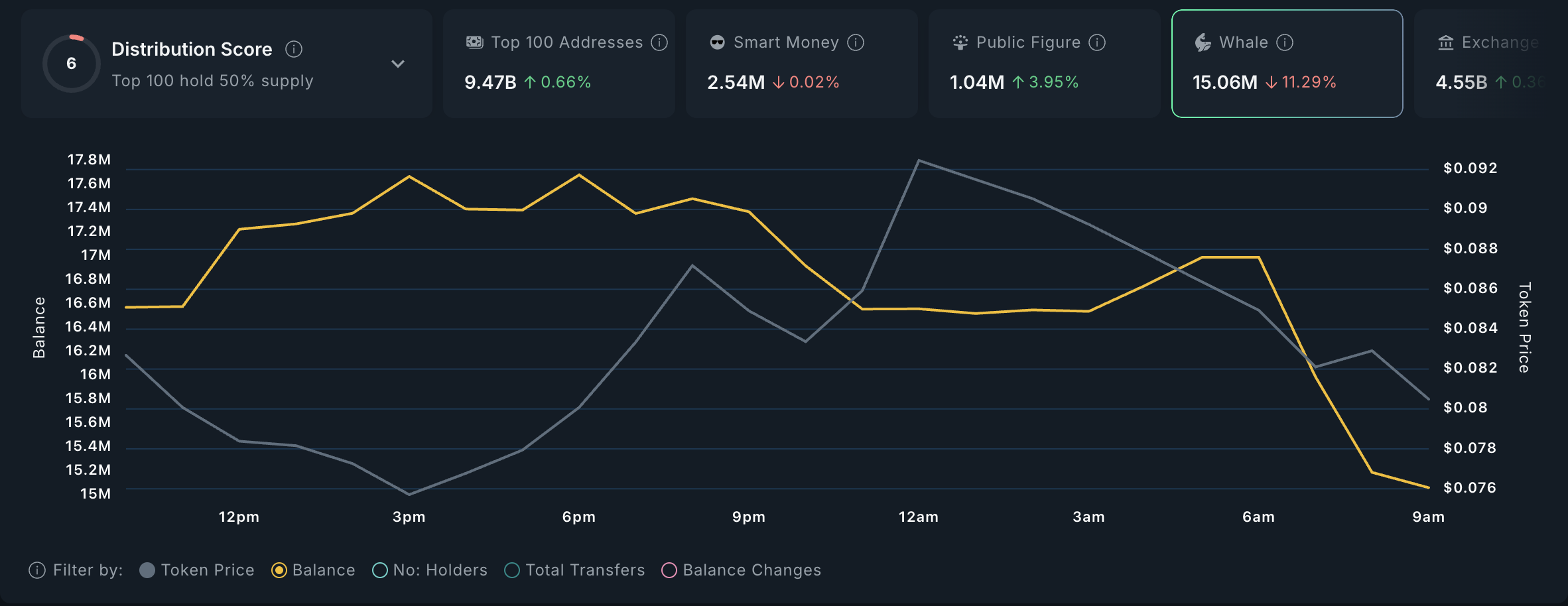 オンチェーンデータプロバイダーによると、100万ドル以上のZORAを保有する高価値ウォレットの残高が1日で約11%減少し、主要な利害関係者の間で顕著な変化を示している。